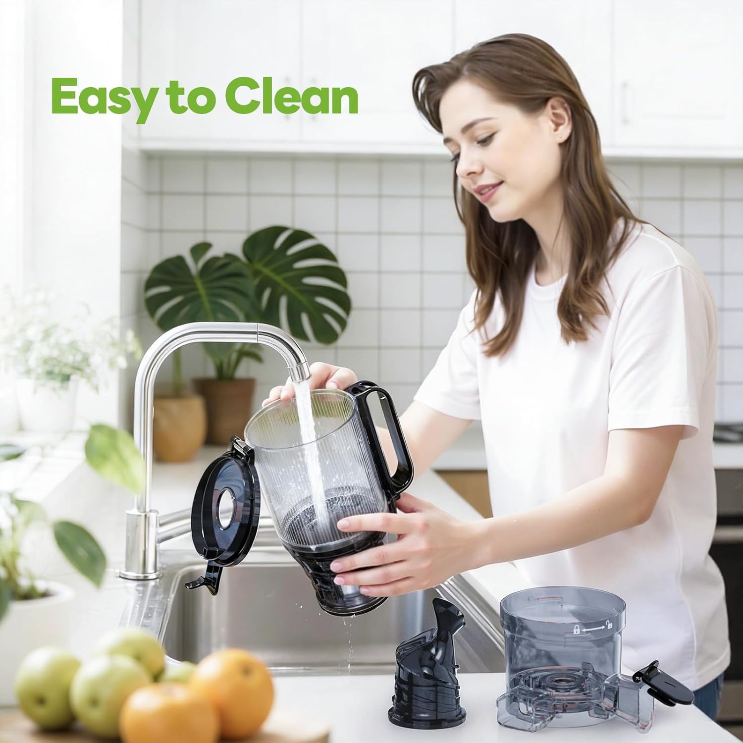 【Easy to Clean】 Rinse removable parts under running water in just seconds. Includes a cleaning brush for hassle-free maintenance, so you can spend less time cleaning and more time enjoying fresh, homemade juice.